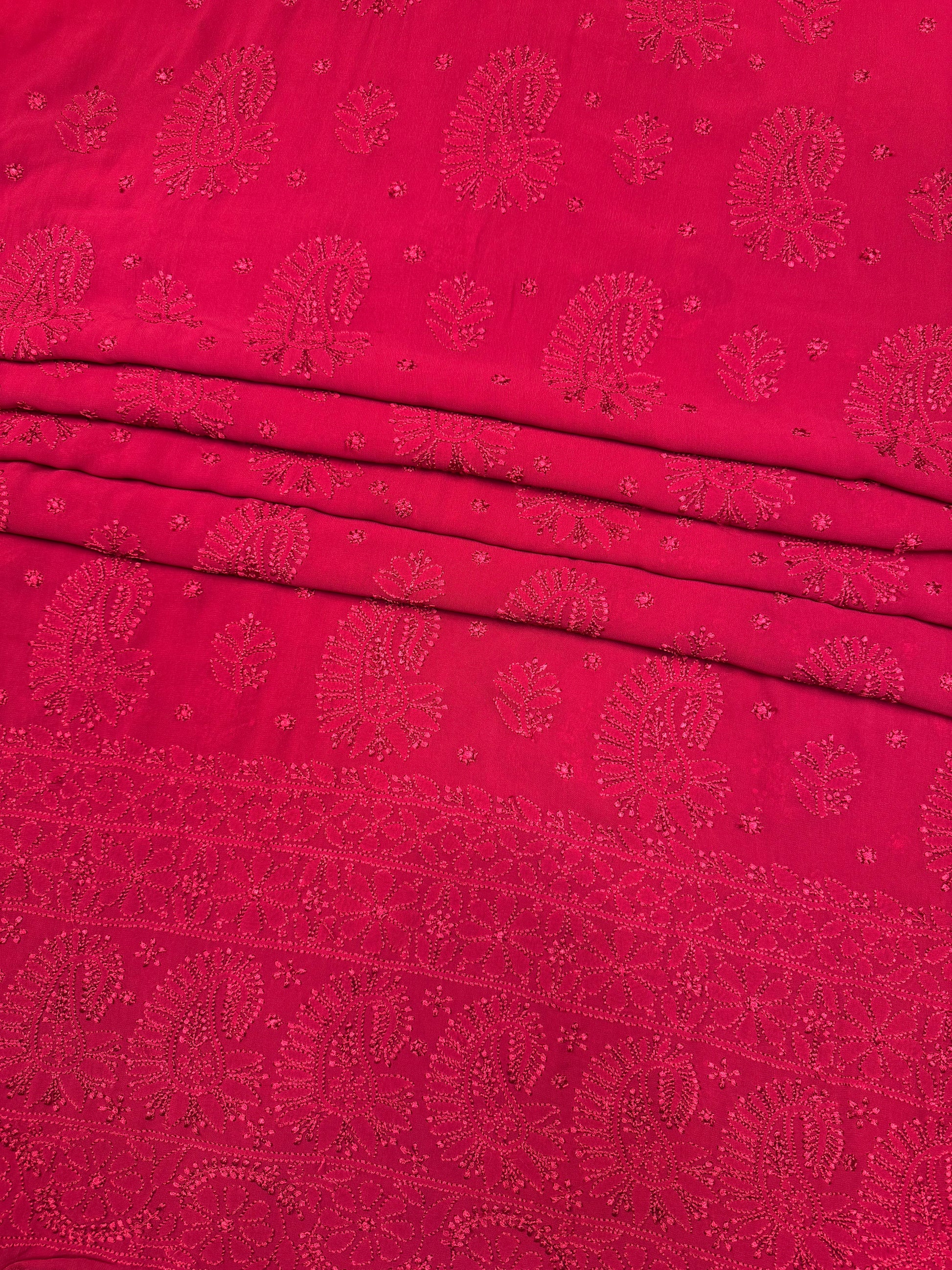 Diva presents Resham Chikankari chiffon unstitched shirts featuring an elegant design of borders and bootis. The front showcases meticulously crafted Chikankari bootis paired with a broad Chikankari border. The back is adorned with delicate Chikankari motif and bootis, while the sleeves display matching Chikankari borders and bootis. This shirt pattern accommodates up to a 50-inch chest and measures 49 inches in length, offering a refined and graceful silhouette.